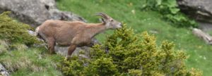 J’y étais donc il y a quelques semaines, entre printemps et été, assis les fesses dans l’herbe et le dos appuyé à un rocher fraternel, comme dans un vaste cinéma. Un renard était passé, déclenchant chez les marmottes une chorale de sifflets peu enthousiastes ; l’aigle m’avait survolé furtivement et je m’attendais, vu les vents favorable, à voir surgir le gypaète barbu. Je regardais donc, en les photographiant d’assez loin, les bouquetins et les chamois quand je me suis arrêté sur les activités de
