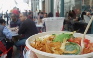Il y a quand même quelques limites. D’abord, il faut être végétarien. Le resto ne sert que des bowls (des bolées) de quinoa auxquels le client peut ajouter d’autres ingrédients : des haricots, des betteraves, du maïs, des pois chiche, des croutons, etc., et l’assaisonnement de son choix : une sauce au curry, par exemple. Ensuite, on n’a pas encore supprimé le temps d’attente, debout évidemment. Quand il y a une file à l’entrée du restaurant, des pancartes vous indiquent le nombre de minutes qui vous séparent de votre quinoa préféré.